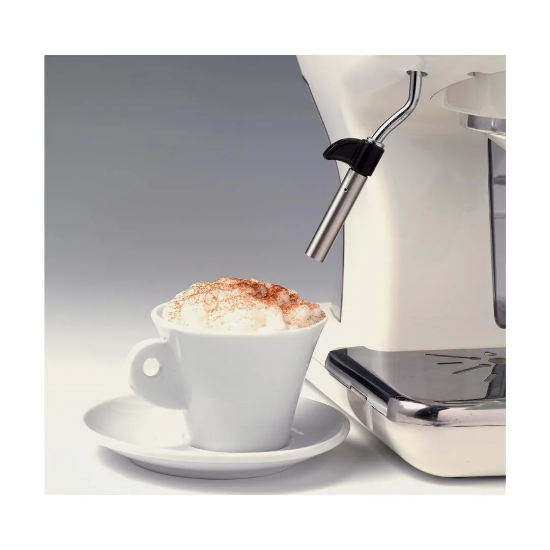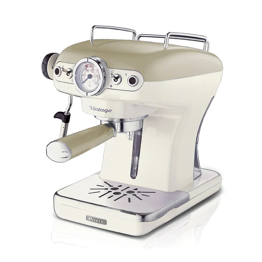 The Ariete Vintage Espresso is a coffee machine with an elegant and refined design, featuring the latest technology for ground coffee or ESE pods. The 900 W aluminium boiler and the 15 bar pressure pump guarantee a full-bodied and creamy espresso, with an intense and fragrant aroma. Maximum convenience with the removable stainless steel drip tray and the removable 0.9 litre tank for easy filling. The Maxi-Cappuccino device is the ideal ally for the preparation of milk froth in perfect combination with Italian espresso. The Ariete 1389 Vintage features an intelligent stand-by device that turns off the power after 30 minutes of inactivity. Ariete makes iconic and functional products: the Vintage Line combines Italian design with the ease of use that is the hallmark of Ariete, leader in breakfast products.