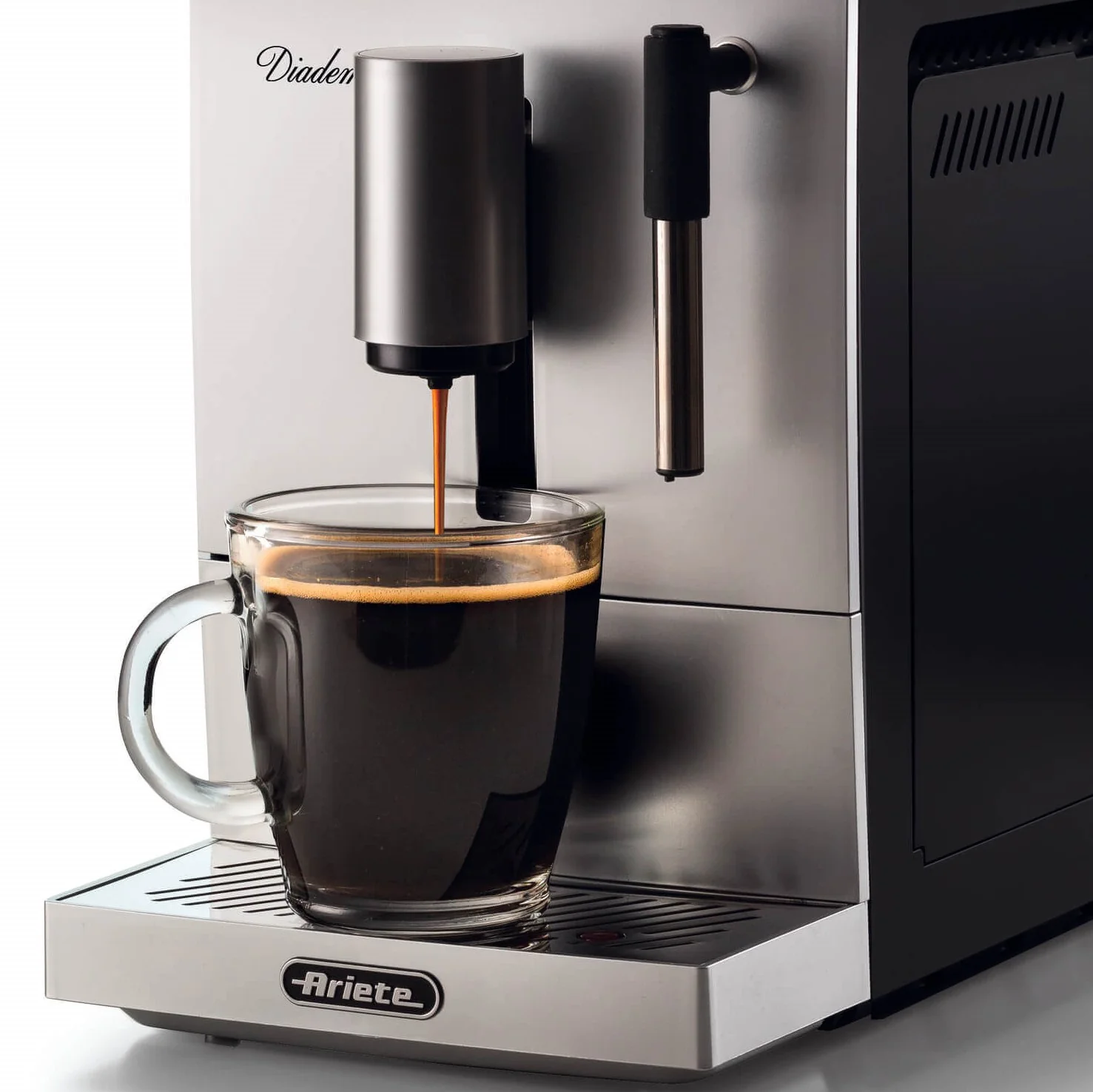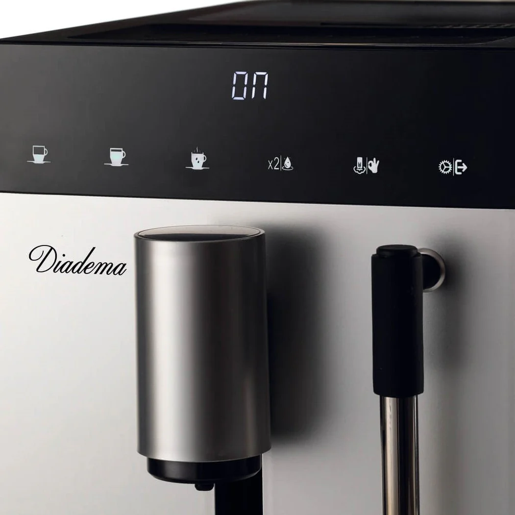 Diadema is the automatic coffee machine for getting the perfect coffee, just like at the bar. Intense and dark colors, linear shapes, and reduced depth. Diadema Pro has a digital LED display to set the characteristics of your coffee and customize them whenever you want. Once the settings are customized, it will only take a simple click to brew your favorite coffee.It offers 3 options to choose from: coffee, Americano and hot water. Next to the coffee dispenser is the Cappuccino Device for making creamy cappuccinos for your breakfasts. You can adjust the dispenser to fit your favorite cup.