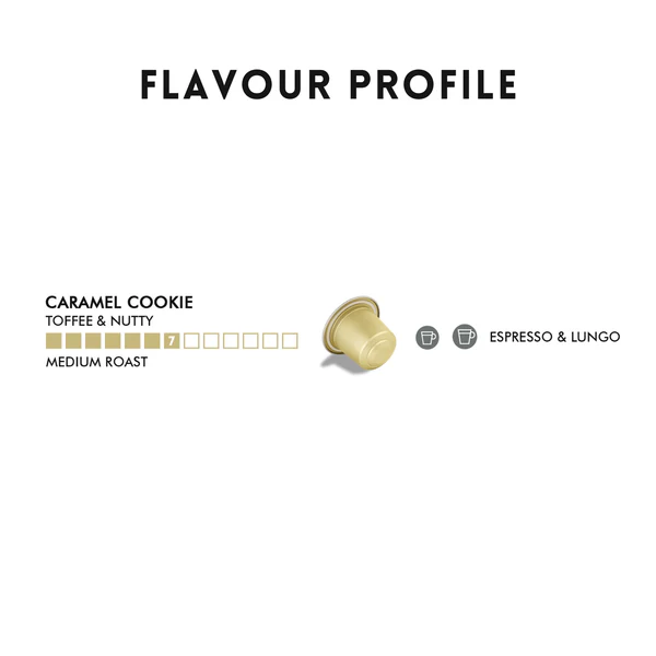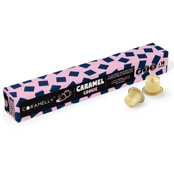 Caramelly Caramel Cookie Flavoured Nespresso® Compatible Coffee Capsules - 10 PodsCaramelly Caramel Cookie Flavoured Nespresso® Compatible Coffee Capsules – 10 Pods