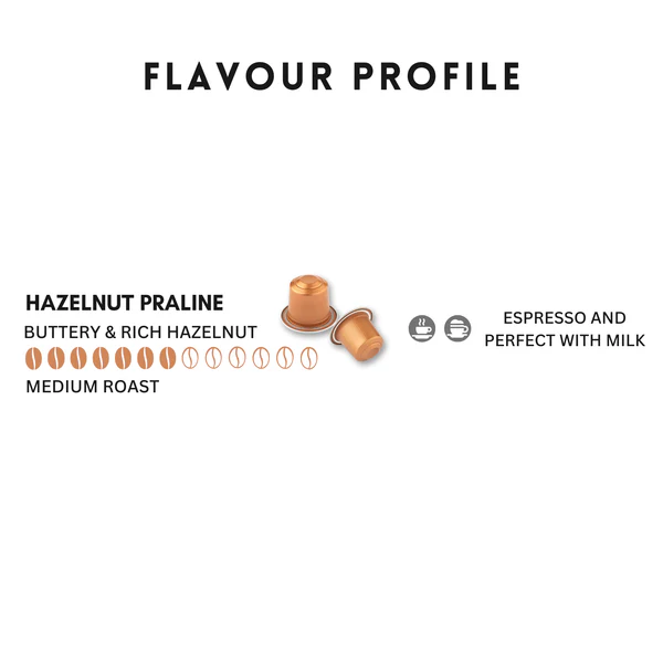 A medium-roast marvel, boasting an intensity of 7/13 and a geek-approved blend of Praline & Toasted Cereal notes. Dive into the intricate world of coffee nuances with this espresso or lungo gem, where hazelnut perfection meets muffin-inspired sophistication in every sip.