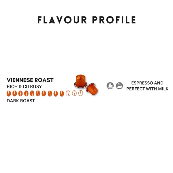A refined blend celebrating Vienna’s coffeehouse traditions, this roast delivers a rich and smooth profile with notes of bittersweet citrus. The medium-dark roast balances depth with approachability.
