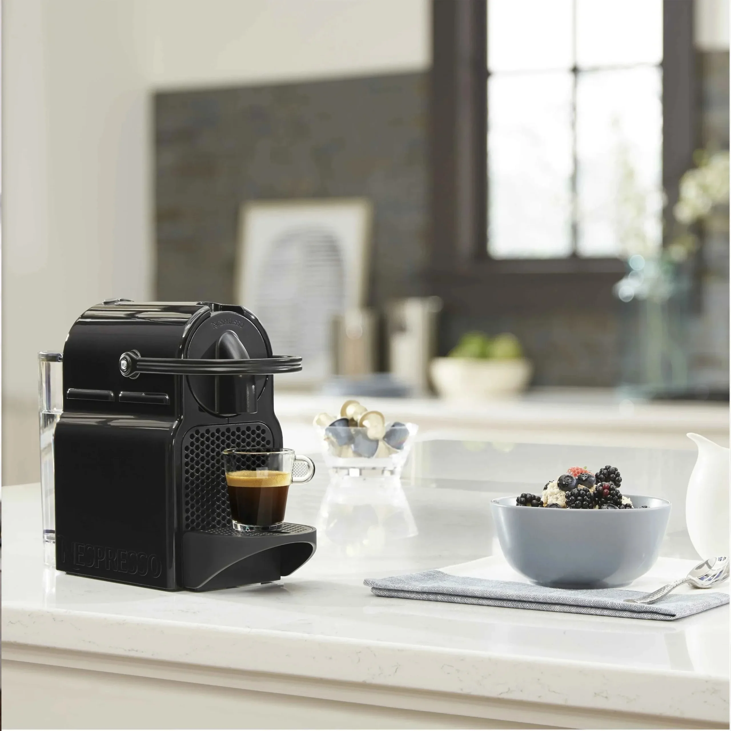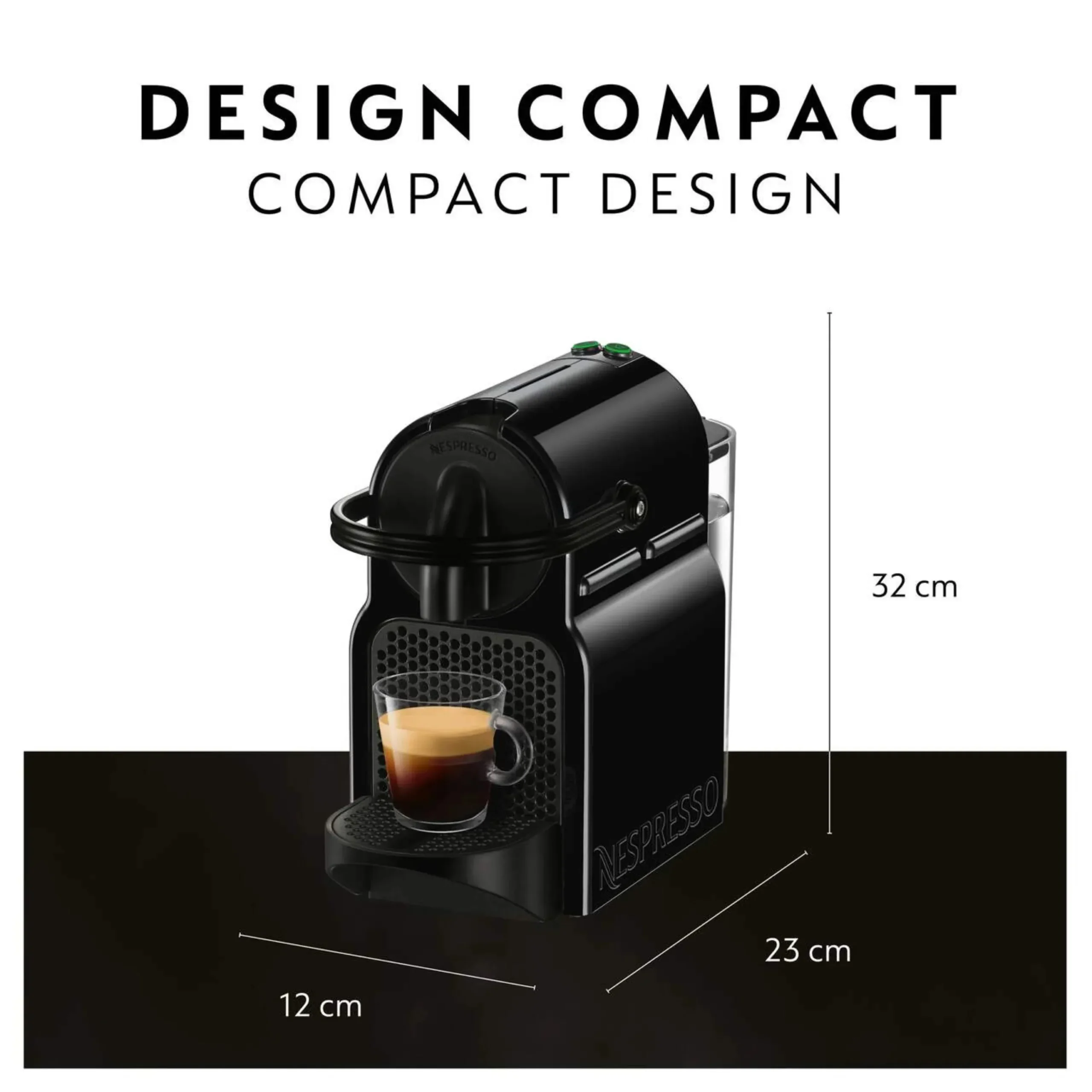 With a tiny footprint, compact, lightweight and equipped with an ergonomic handle, the Nespresso Inissia coffee machine fits perfectly into any interior design and is available in a full palette of colors to satisfy all tastes.