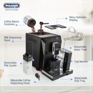New Delonghi Eletta Super Automatic Bean To Cup Cappuccino Coffee Machine With De Brewerz Warranty